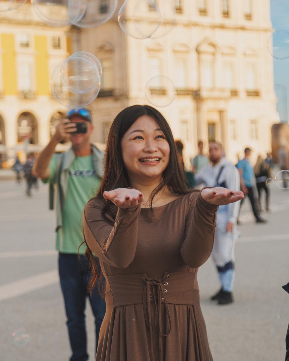 週末的黃昏,我坐著復古電車,來到里斯本的商業廣場。凱旋門的前面,孩子們正在玩耍,捕捉着一個又一個的彩色泡沫。再次重回里斯本,我的心情就像陽光下的泡沫一樣。